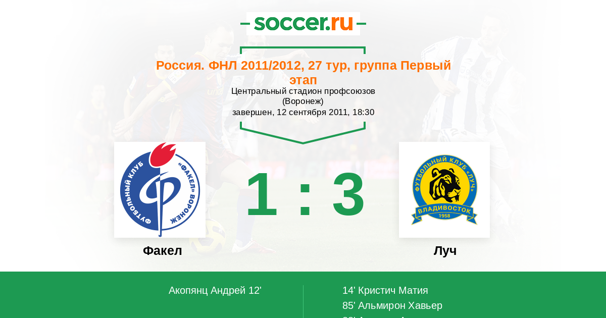 Протокол матча Факел против Луч