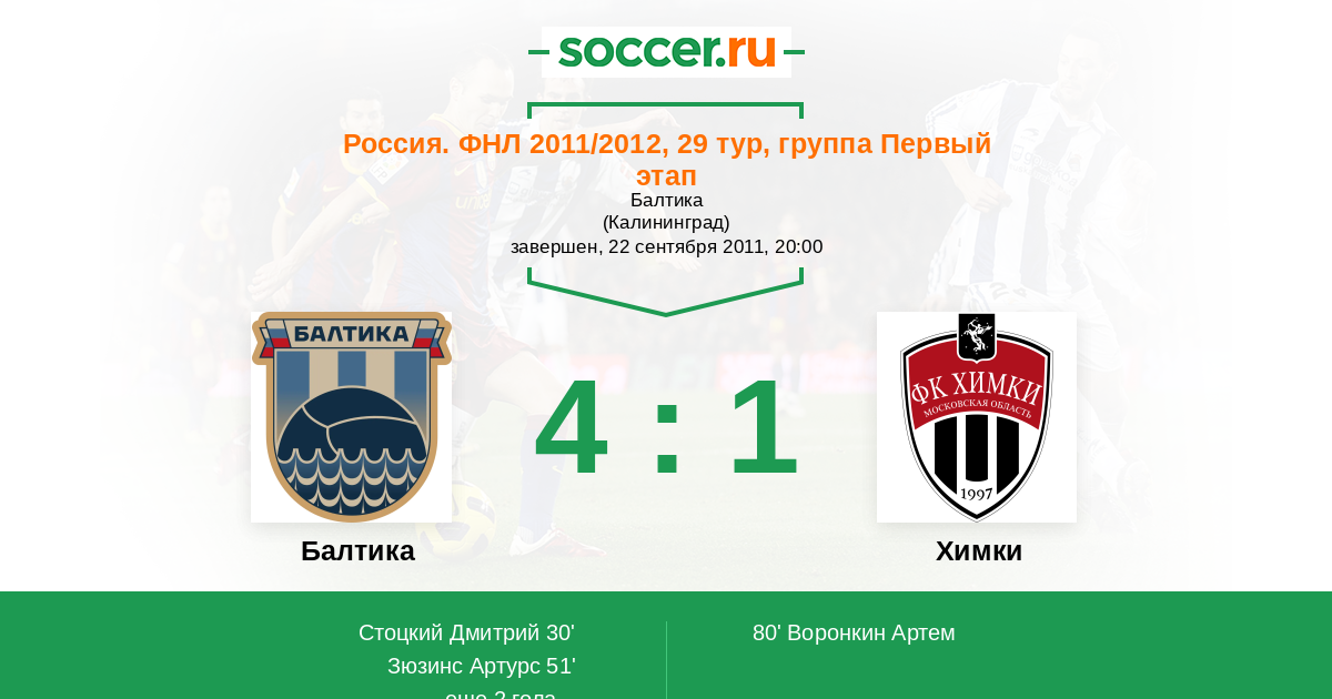 Протокол матча Балтика против Химки