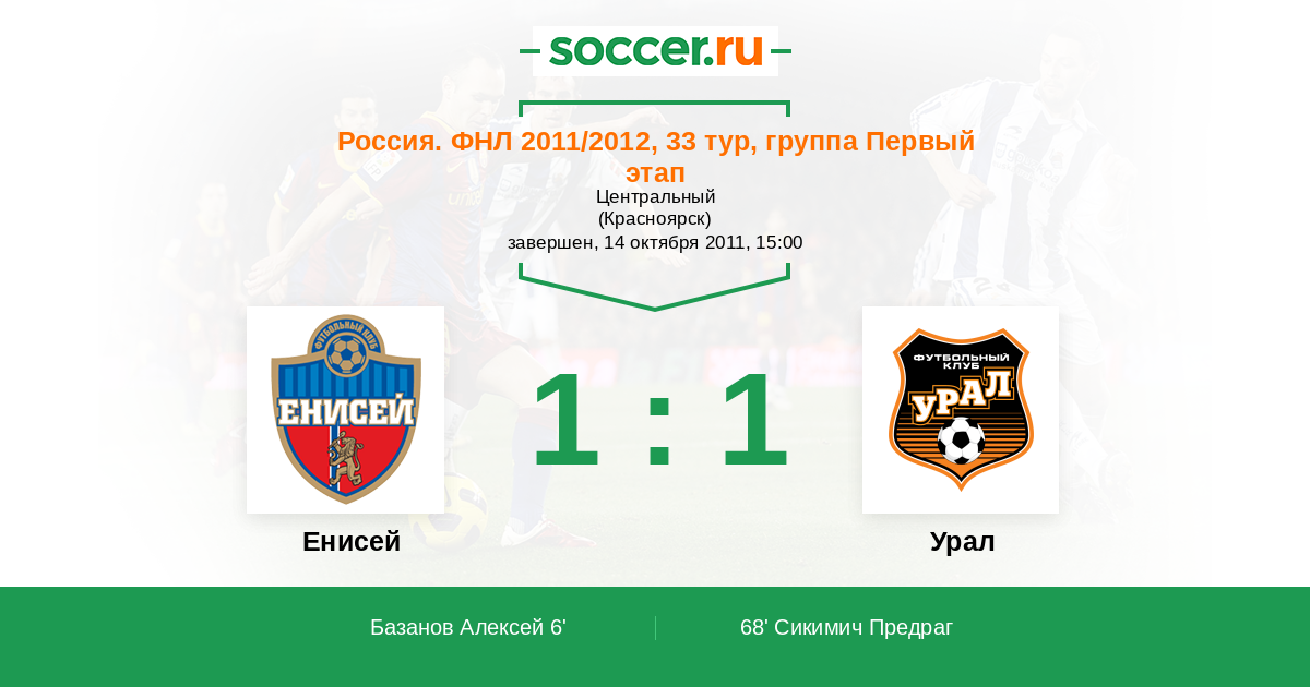 Протокол матча Енисей против Урал