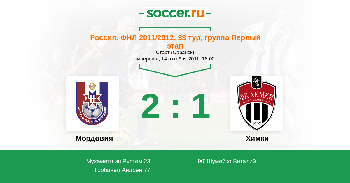 Протокол матча Мордовия против Химки