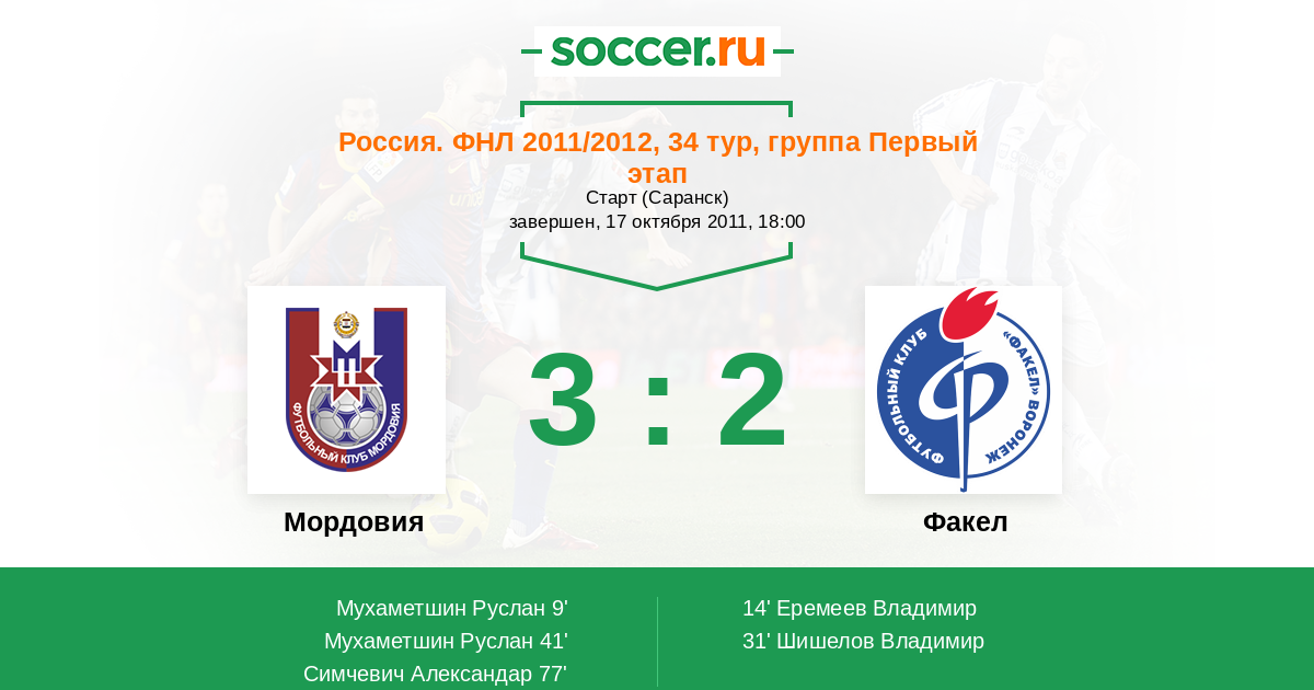 Протокол матча Мордовия против Факел