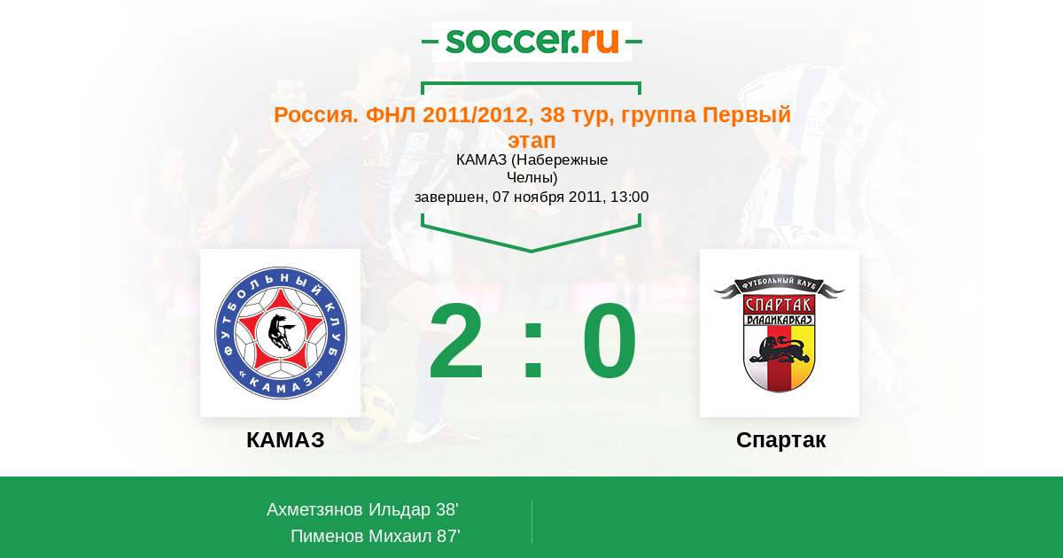 Протокол матча КАМАЗ против Алания
