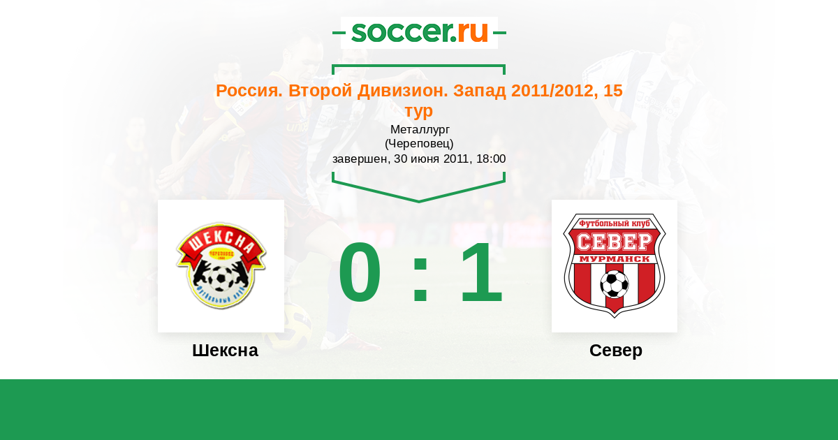 Россия. Вторая лига. Группа 2 27.09.2011 Север Логотип футбольный клуб Север (Мурманск) 2:0 Логотип футбольный клуб Шексна (Череповец) Шексна