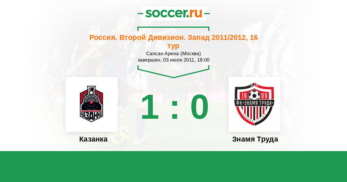 Россия. Вторая лига. Группа 2 19.07.2017 Знамя Труда Логотип футбольный клуб Знамя Труда (Орехово-Зуево) 0:7 Логотип футбольный клуб Казанка (Москва) Казанка