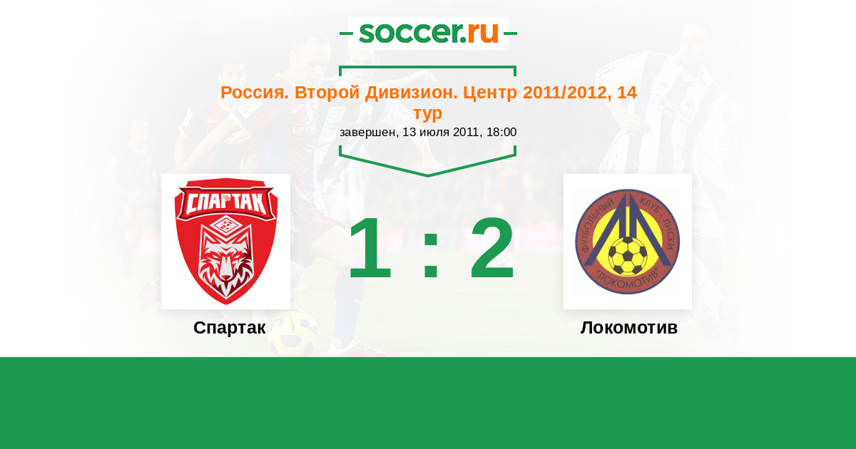 Россия. Вторая лига. Группа 3 31.07.2012 Спартак Логотип футбольный клуб Спартак (Тамбов) 0:0 Логотип футбольный клуб Локомотив (Лиски) Локомотив
