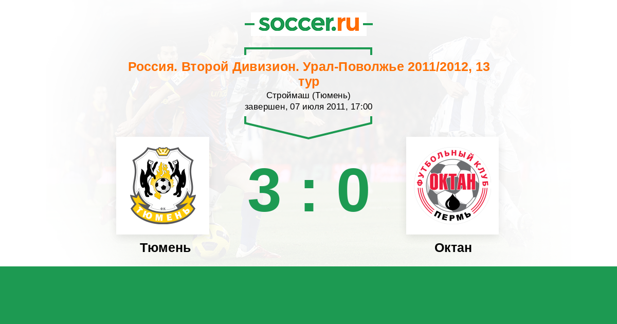 Россия. Вторая лига. Группа 4 05.06.2012 Тюмень Логотип футбольный клуб Тюмень 4:0 Логотип футбольный клуб Октан (Пермь) Октан