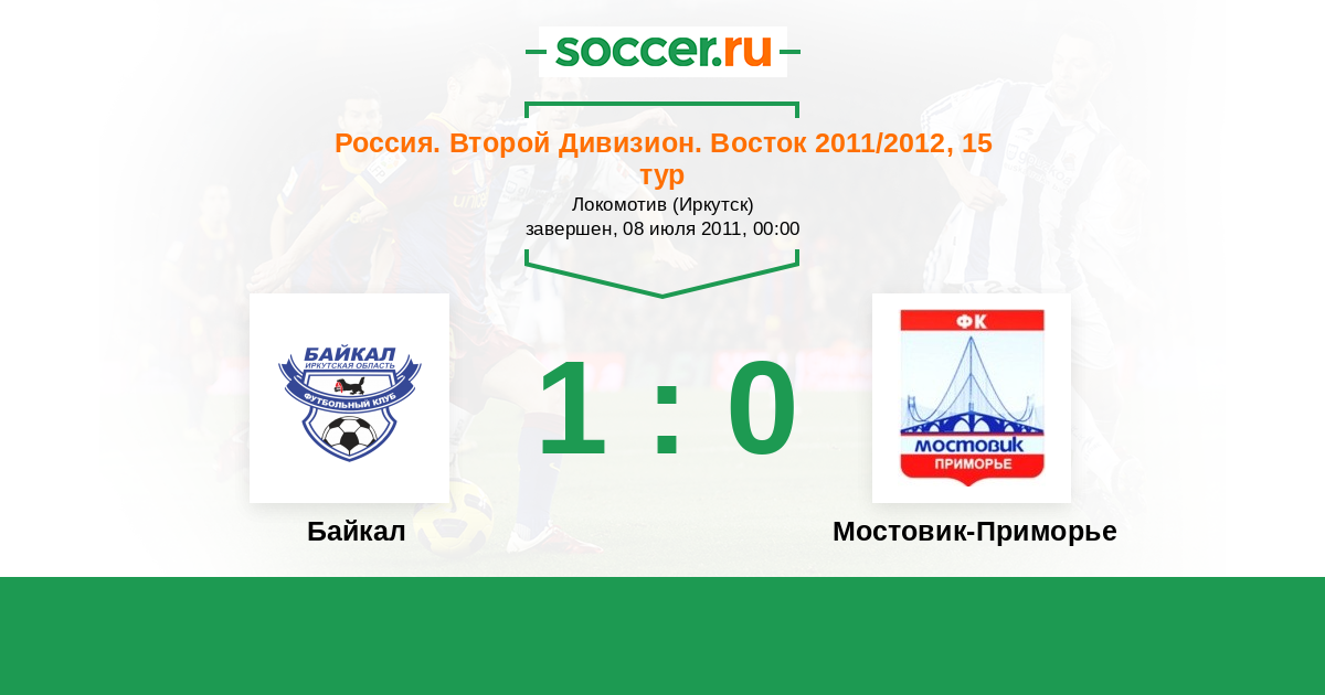 Россия. 2-й дивизион. Восток 27.06.2011 Мостовик-Приморье Логотип футбольный клуб Мостовик-Приморье (Уссурийск) 2:1 Логотип футбольный клуб Байкал (Иркутск) Байкал
