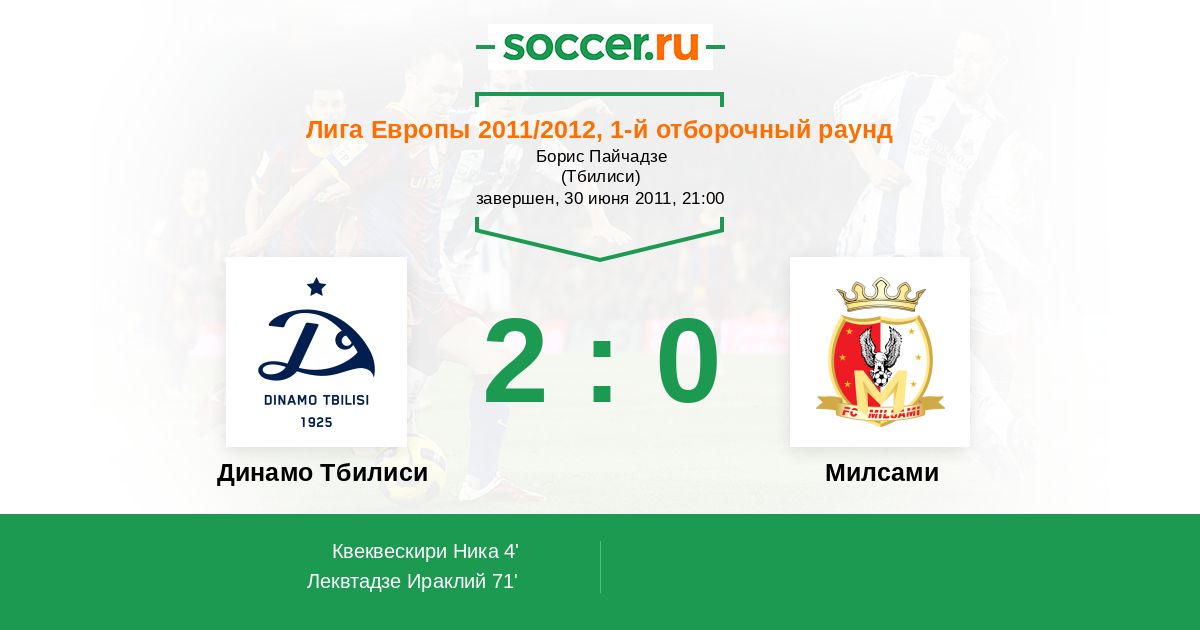 Протокол матча Динамо Тбилиси против Милсами