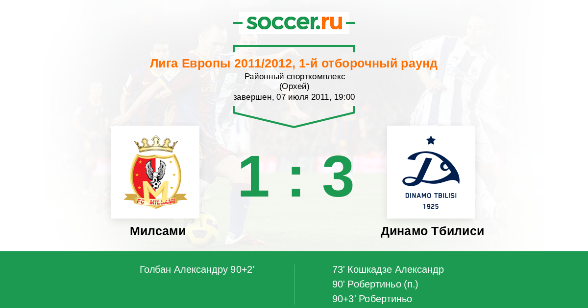 Протокол матча Милсами против Динамо Тбилиси