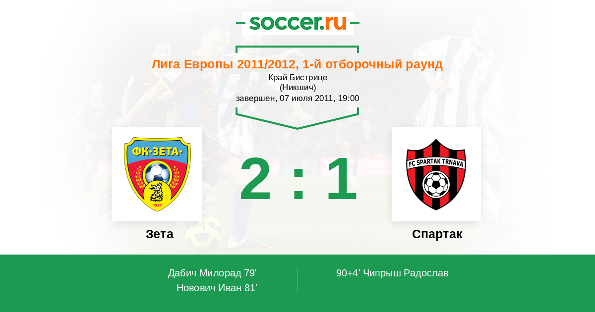Протокол матча Зета против Спартак