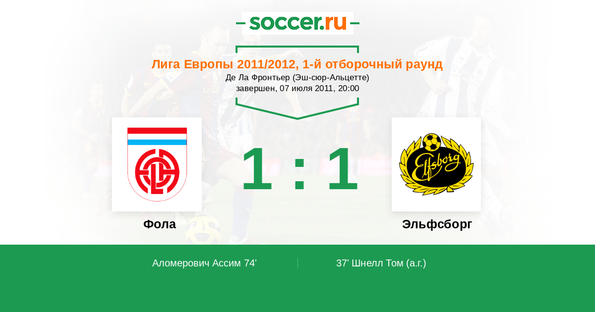 Протокол матча Фола против Эльфсборг