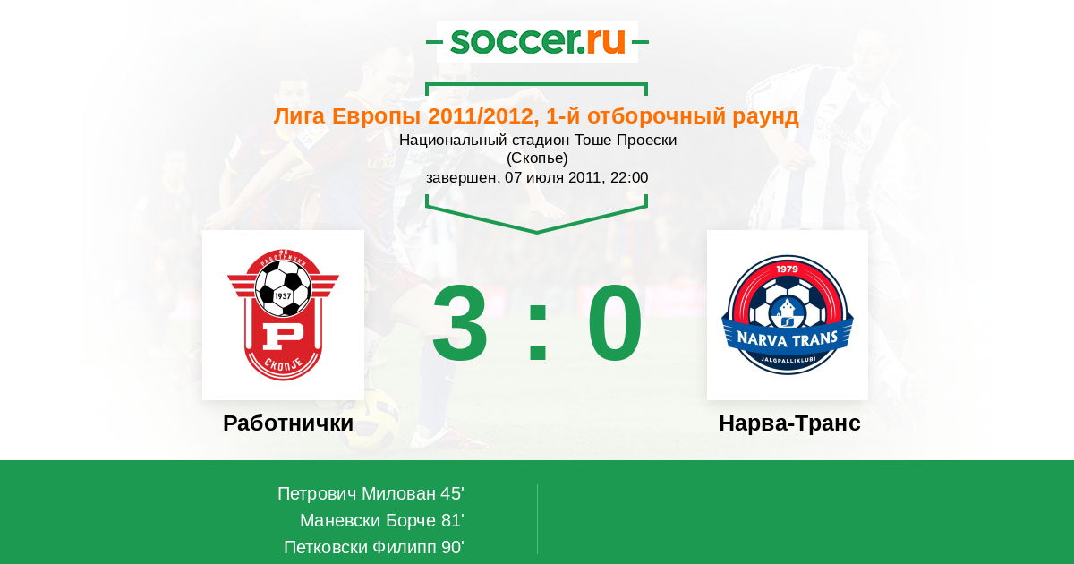 Протокол матча Работнички против Нарва-Транс