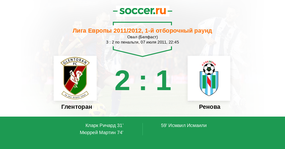 Протокол матча Гленторан против Ренова