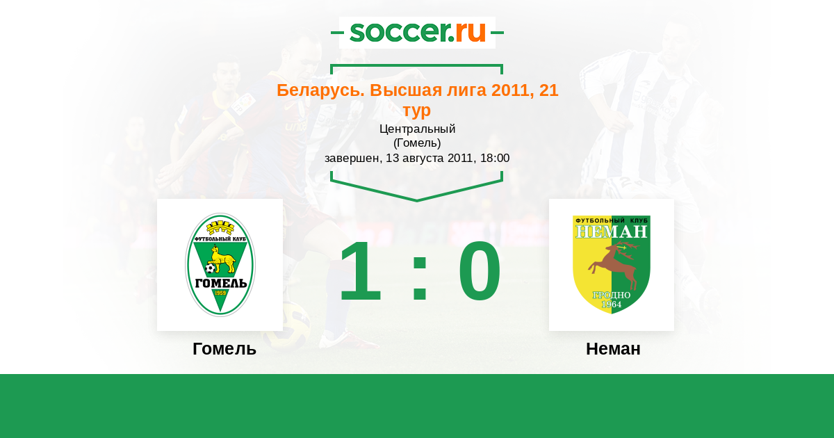 Беларусь. Высшая лига 15.05.2011 Неман Логотип футбольный клуб Неман (Гродно) 0:0 Логотип футбольный клуб Гомель Гомель