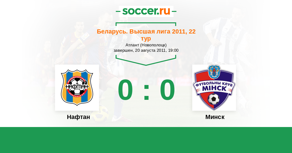 Беларусь. Высшая лига 01.07.2012 Минск Логотип футбольный клуб Минск 1:0 Логотип футбольный клуб Нафтан (Новополоцк) Нафтан
