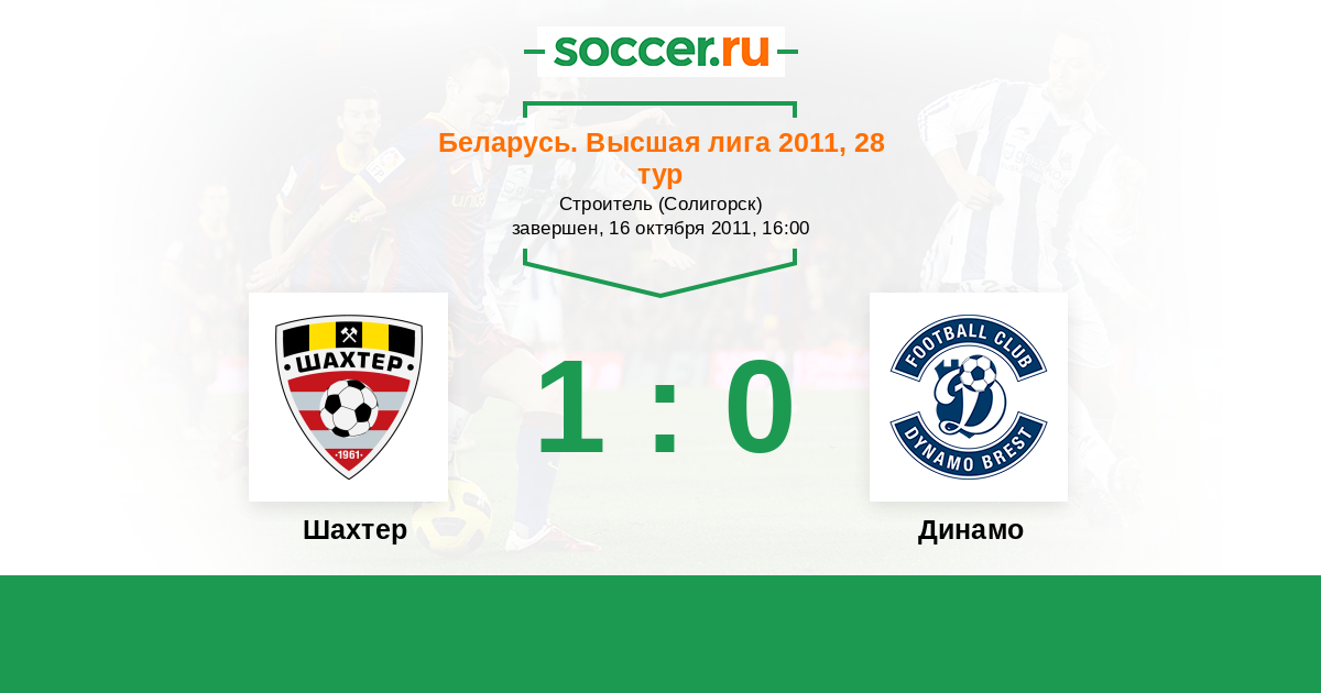 Беларусь. Высшая лига 21.08.2011 Динамо Логотип футбольный клуб Динамо (Брест) 4:0 Логотип футбольный клуб Шахтер (Солигорск) Шахтер