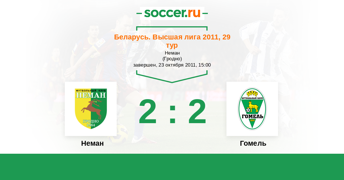 Беларусь. Высшая лига 15.05.2011 Неман Логотип футбольный клуб Неман (Гродно) 0:0 Логотип футбольный клуб Гомель Гомель