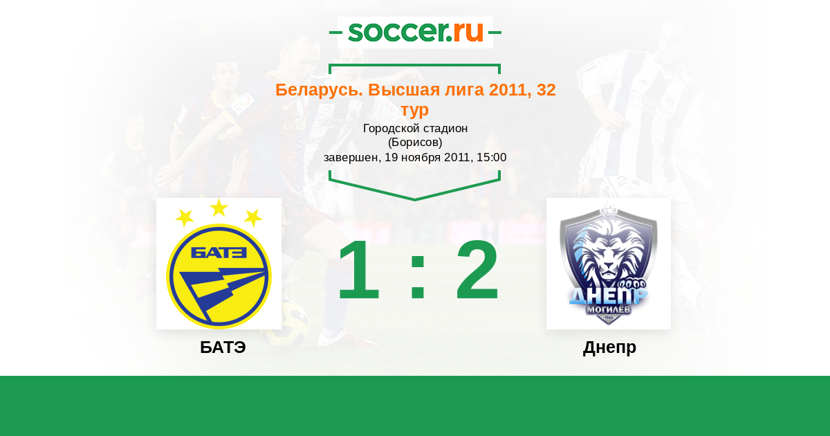 Беларусь. Высшая лига 10.04.2011 Днепр Логотип футбольный клуб Днепр (Могилев) 1:1 Логотип футбольный клуб БАТЭ (Борисов) БАТЭ