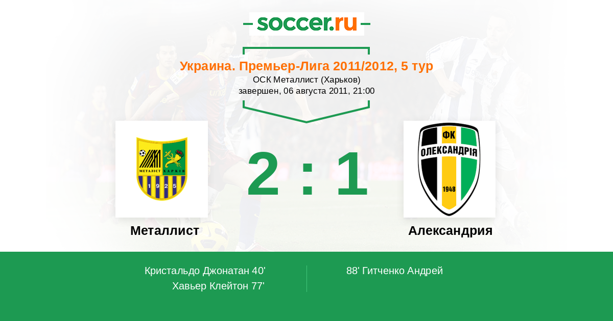 Протокол матча Металлист против Александрия