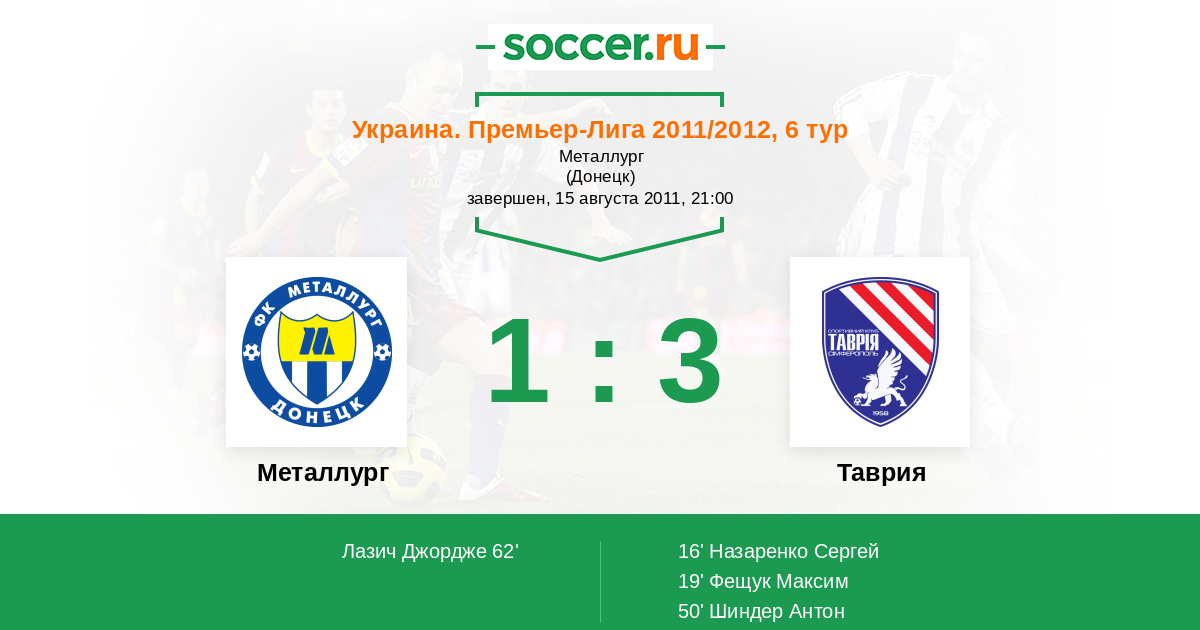 Протокол матча Металлург против Таврия