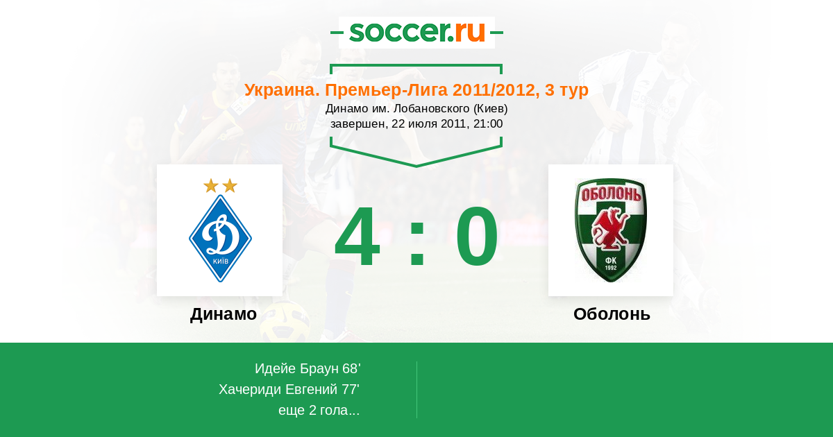 Протокол матча Динамо против Оболонь