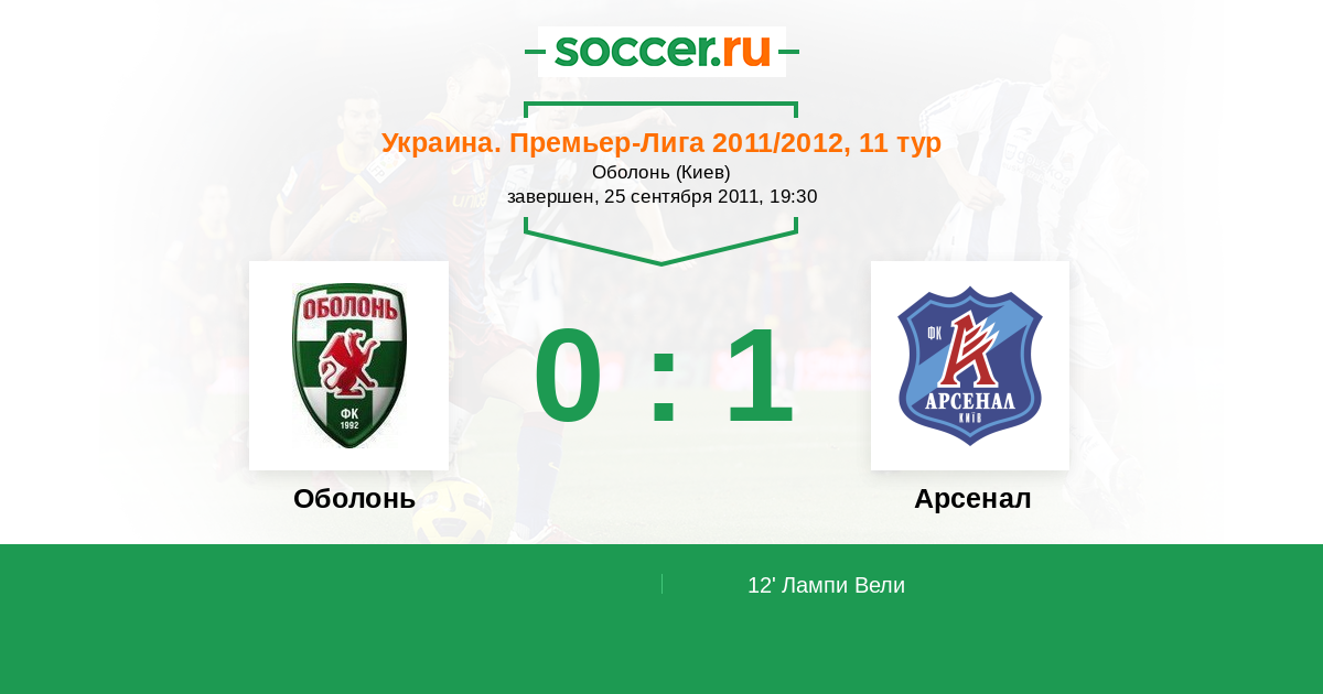 Протокол матча Оболонь против Арсенал