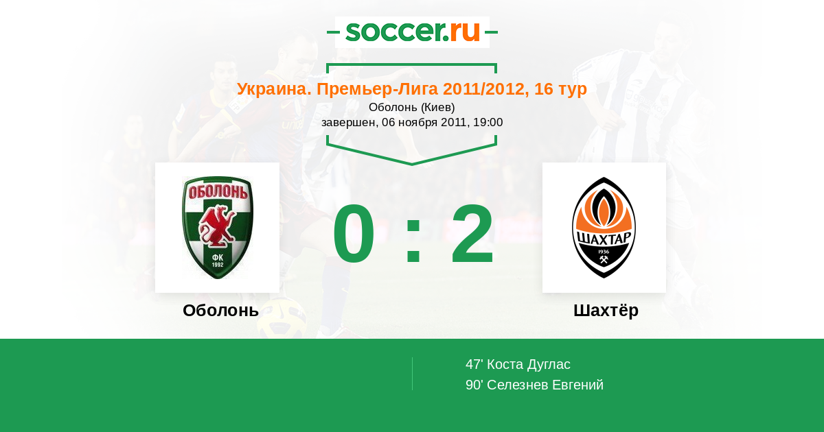 Протокол матча Оболонь против Шахтёр