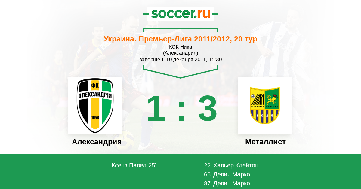 Протокол матча Александрия против Металлист
