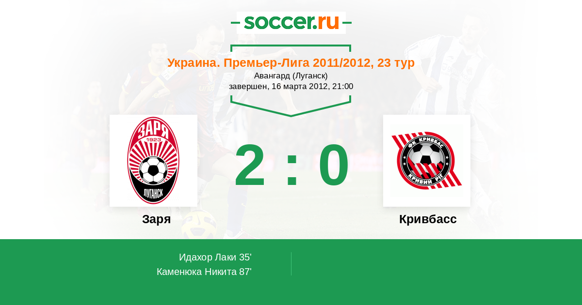 Протокол матча Заря против Кривбасс