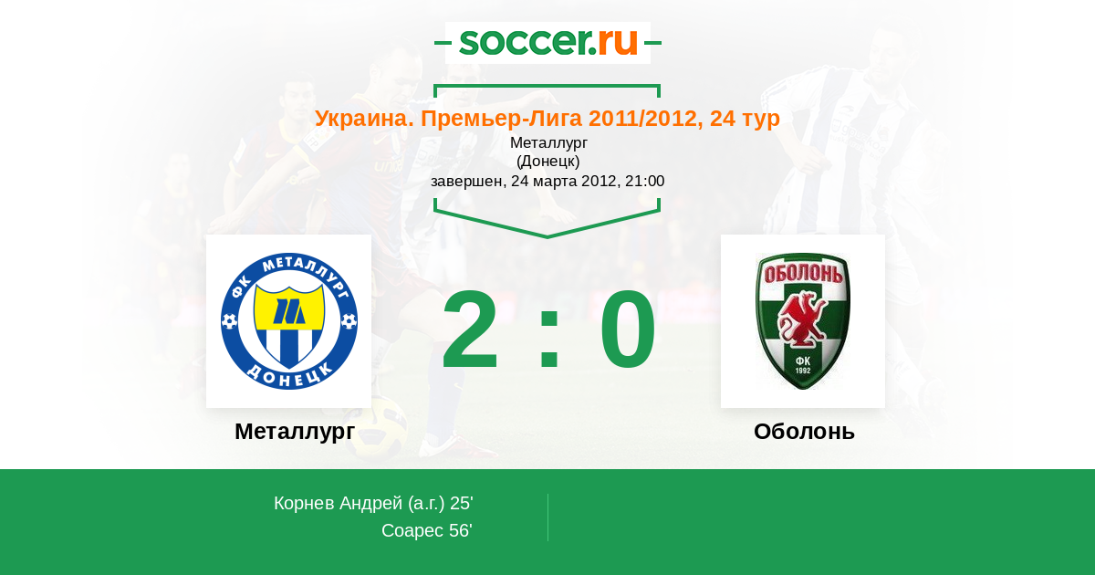 Протокол матча Металлург против Оболонь