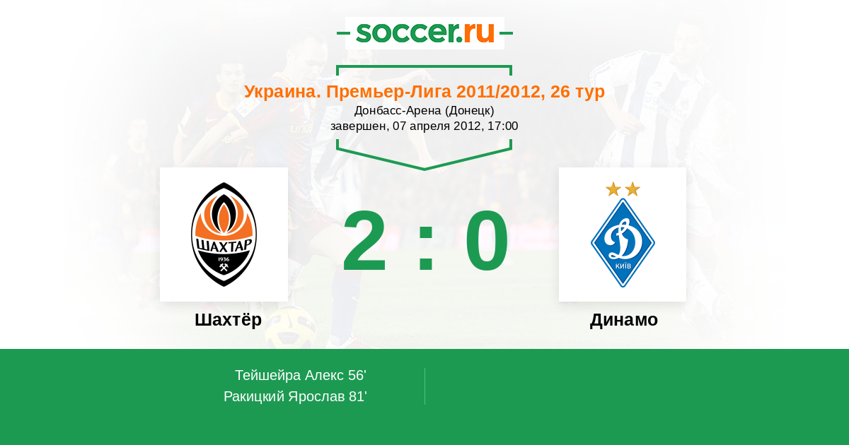 Протокол матча Шахтёр против Динамо