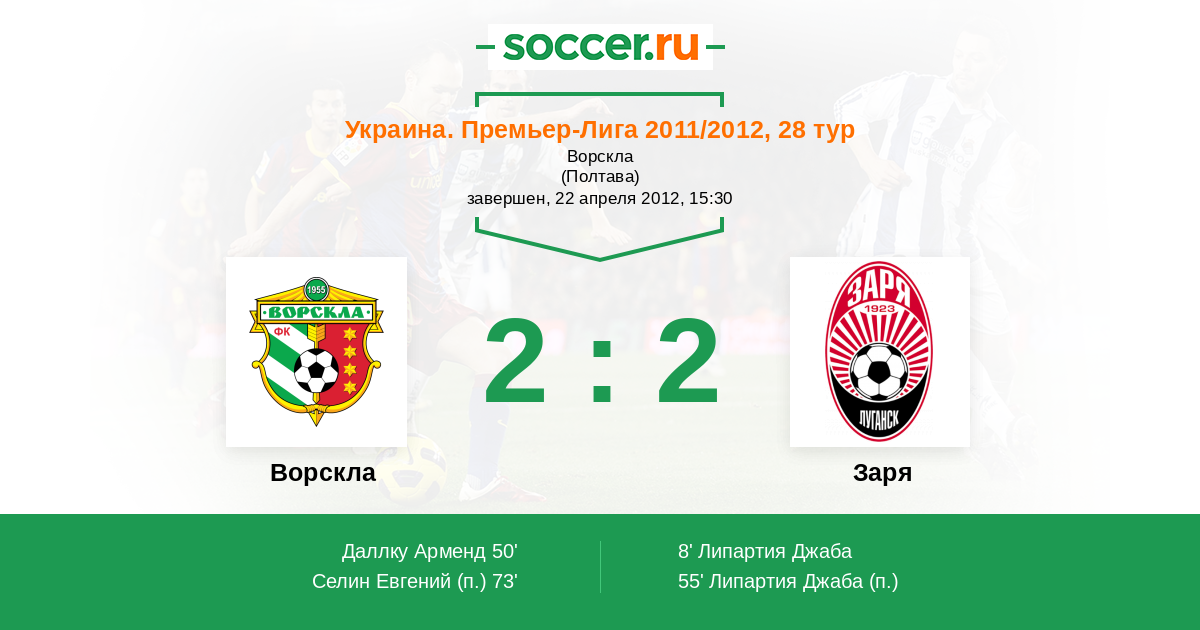 Протокол матча Ворскла против Заря