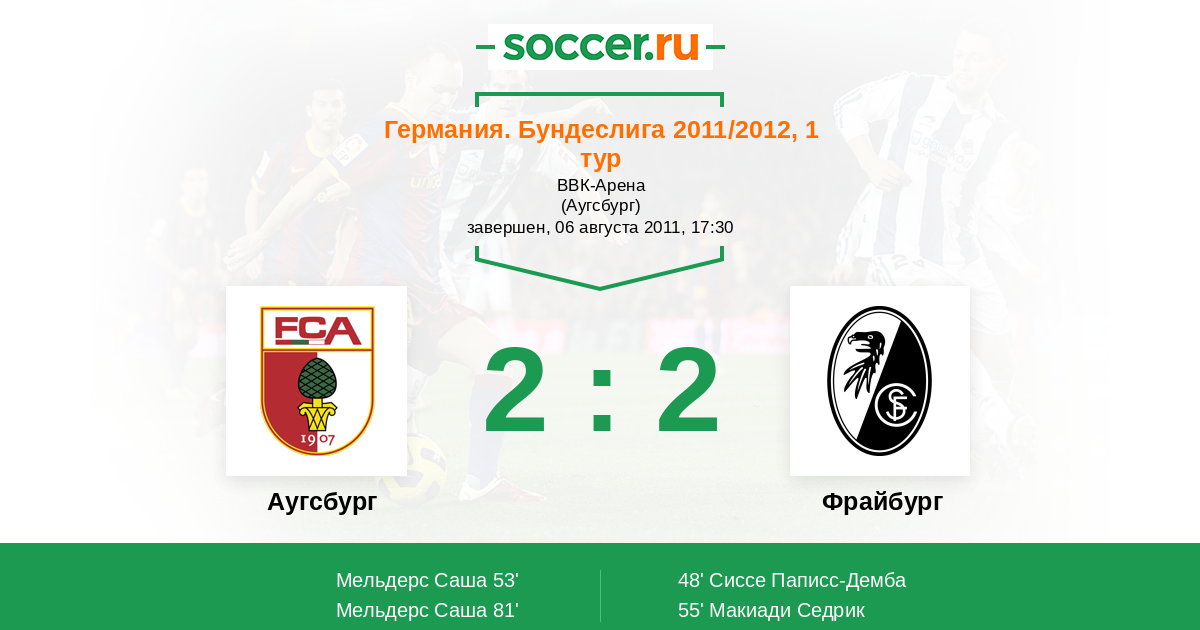 Протокол матча Аугсбург против Фрайбург