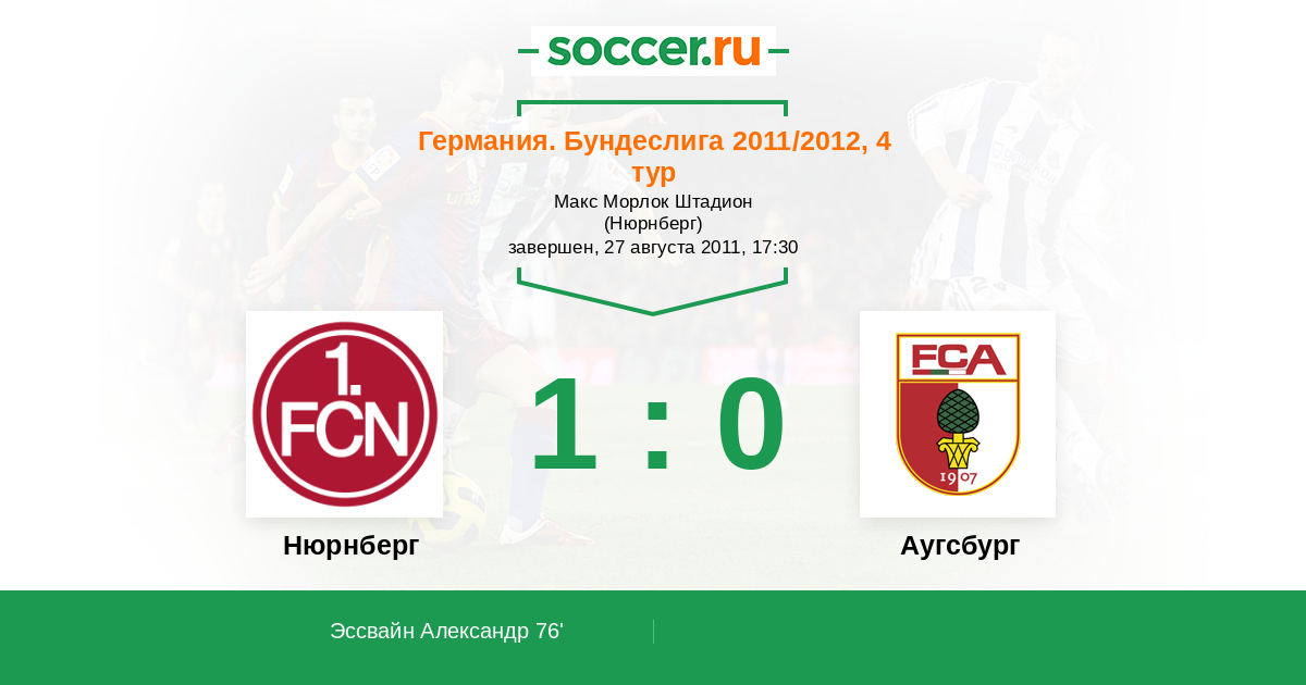 Протокол матча Нюрнберг против Аугсбург