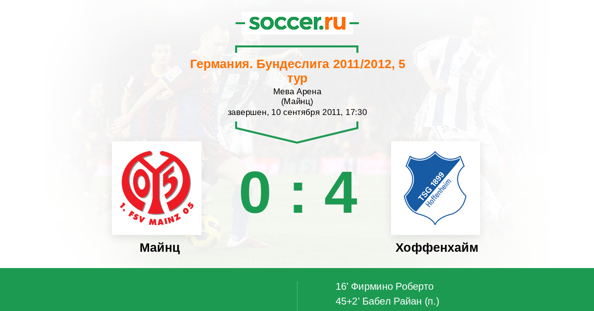 Протокол матча Майнц против Хоффенхайм