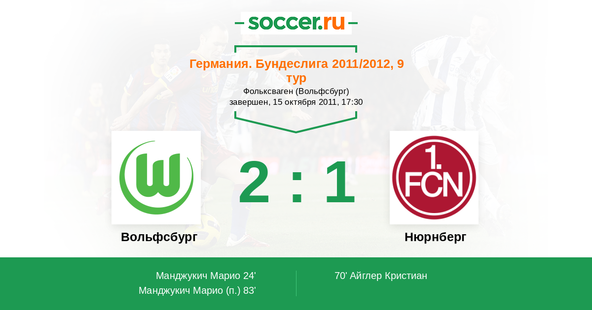 Протокол матча Вольфсбург против Нюрнберг