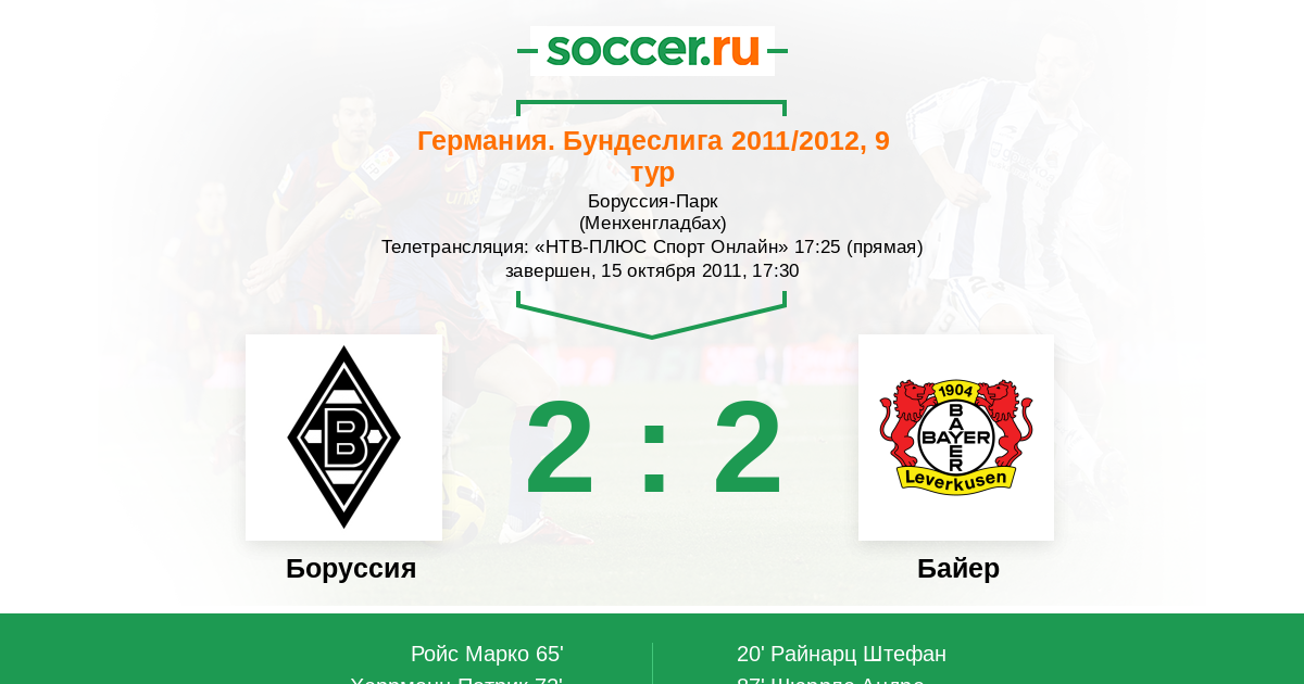 20' (0:1) Райнарц Штефан (3) (Баллак Михаэль (13))
