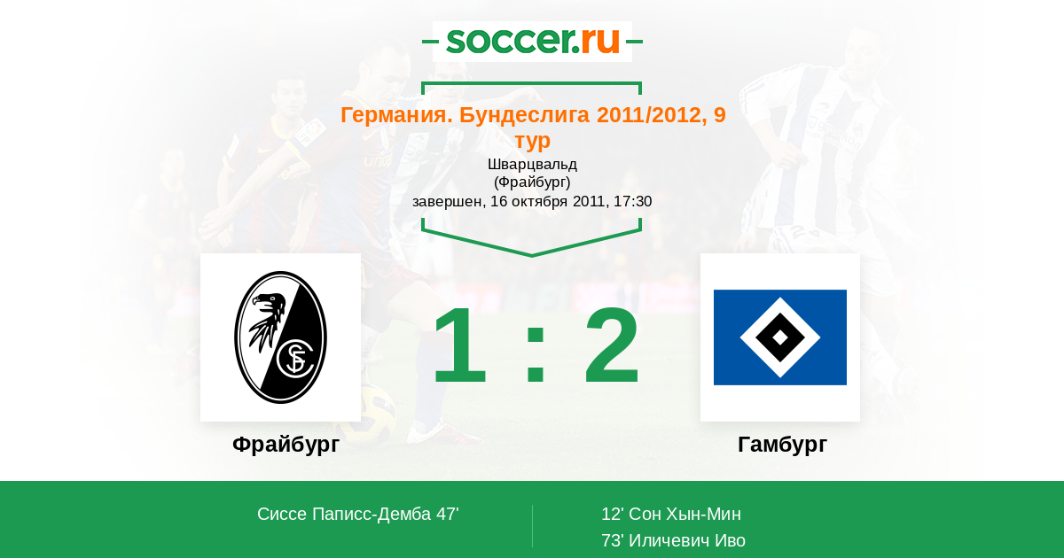Протокол матча Фрайбург против Гамбург