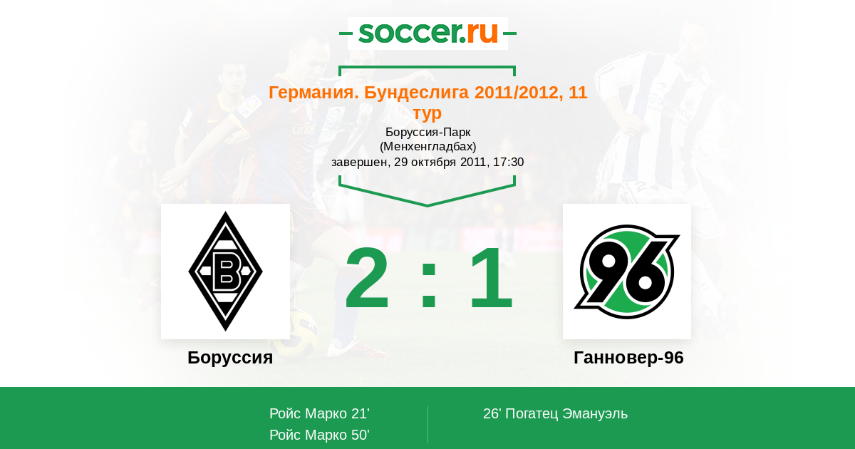 Протокол матча Боруссия против Ганновер-96