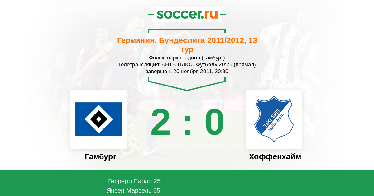 Протокол матча Гамбург против Хоффенхайм