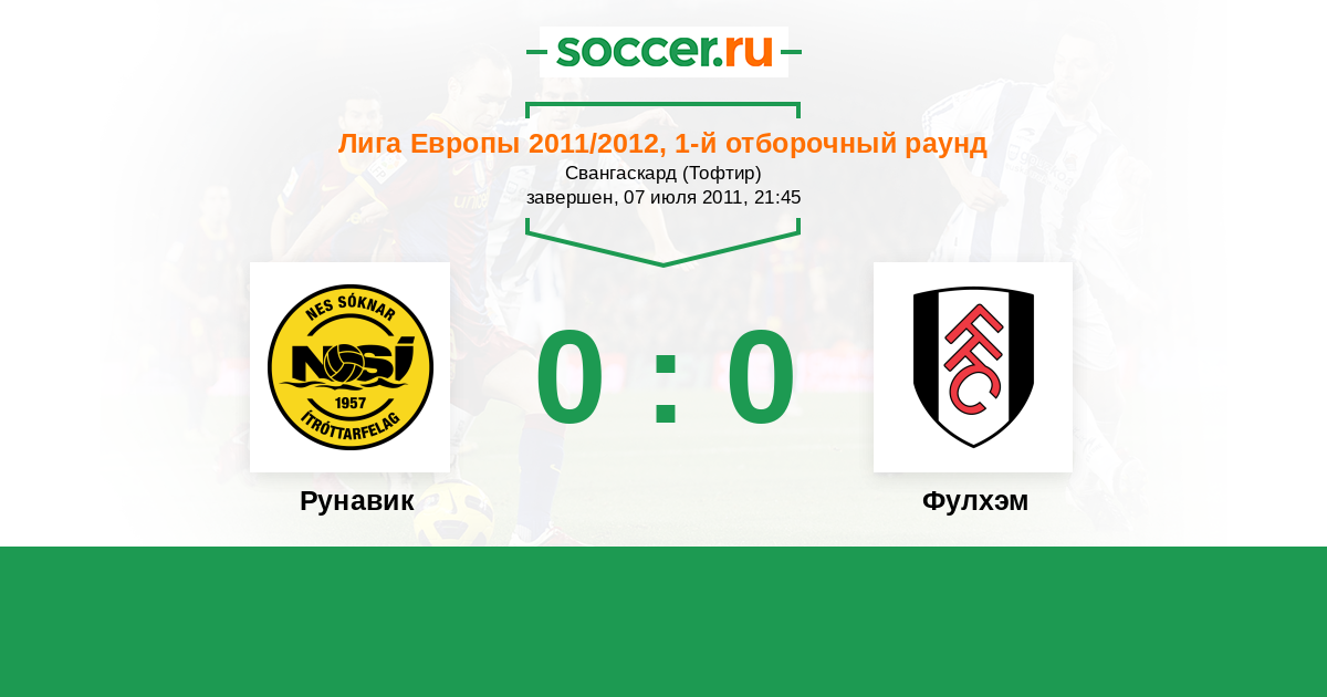 Протокол матча Рунавик против Фулхэм