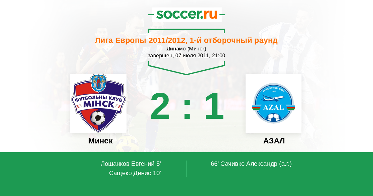 Протокол матча Минск против АЗАЛ
