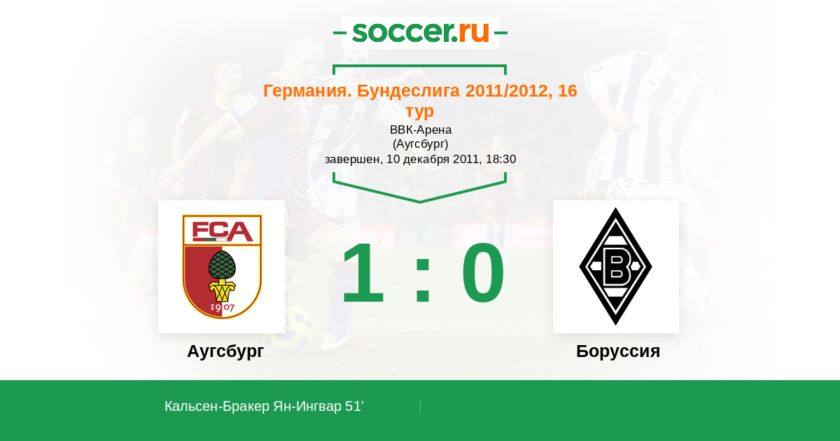 Протокол матча Аугсбург против Боруссия