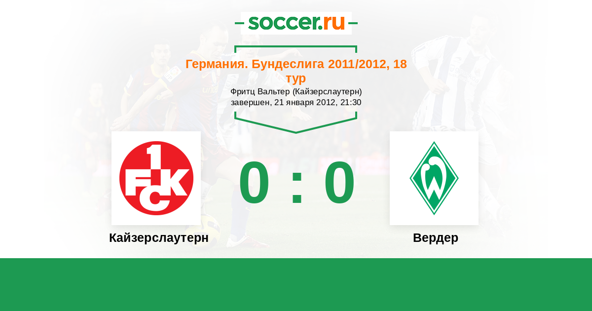 Протокол матча Кайзерслаутерн против Вердер