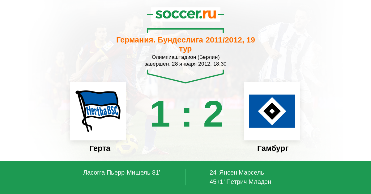 Протокол матча Герта против Гамбург