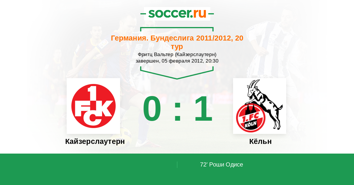 Протокол матча Кайзерслаутерн против Кёльн