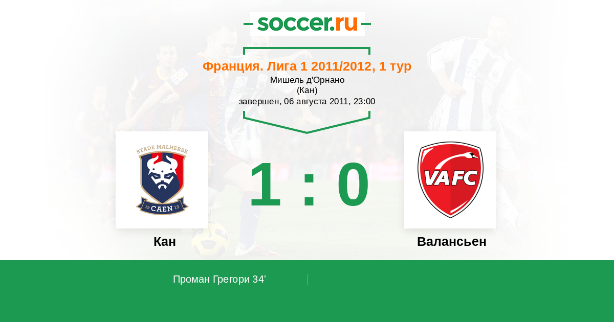 34' (1:0) Проман Грегори (12) (Соб Николя (2))