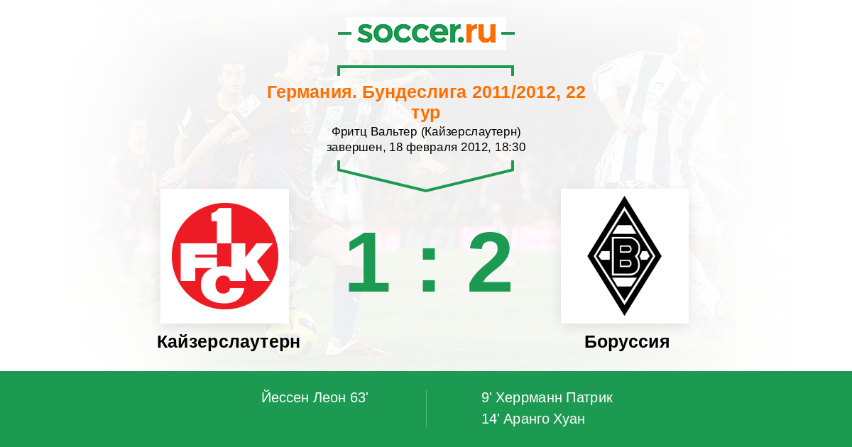 Протокол матча Кайзерслаутерн против Боруссия