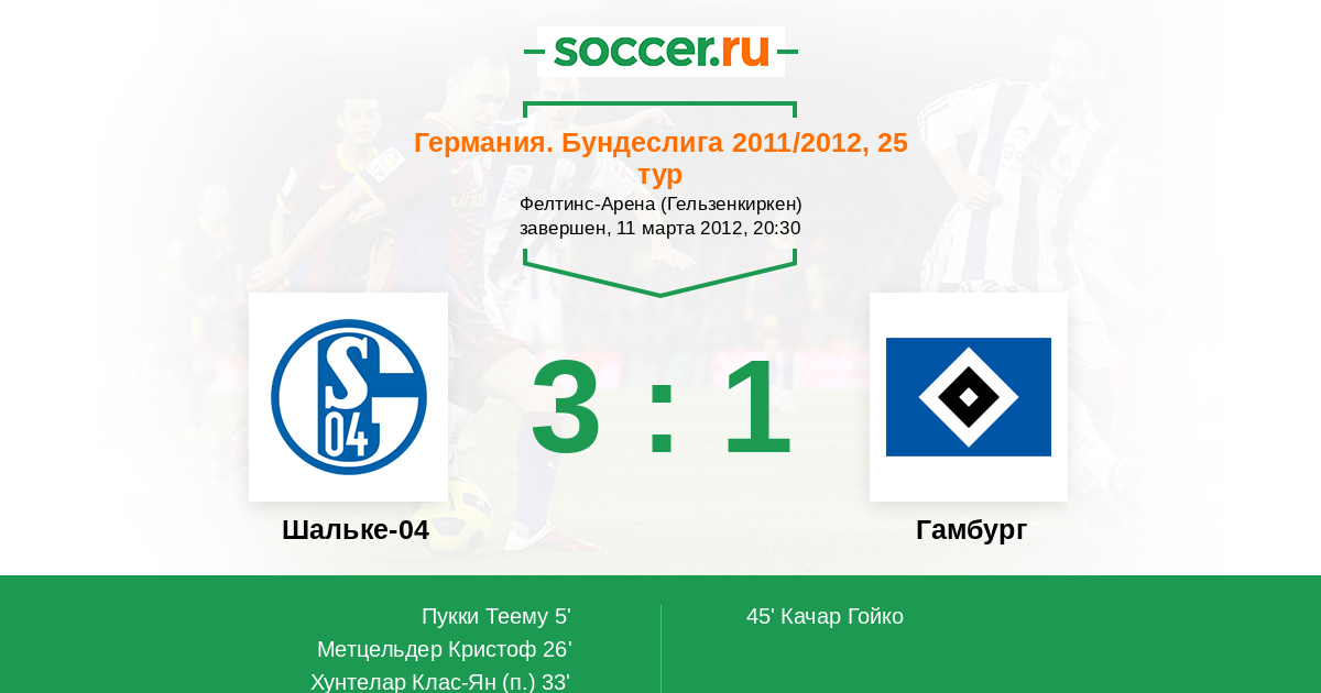 Протокол матча Шальке-04 против Гамбург