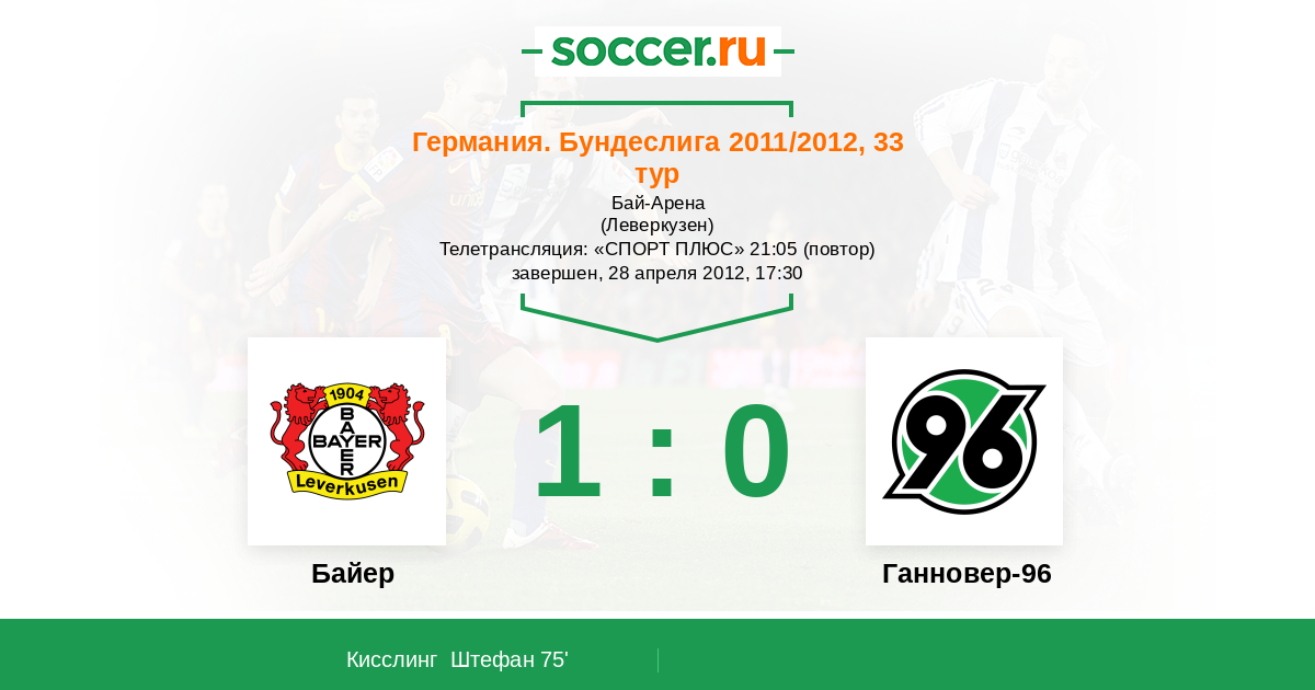 Протокол матча Байер против Ганновер-96